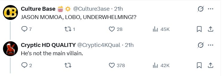He also stated that Jason Momoa’s Lobo is “not the main villain.”