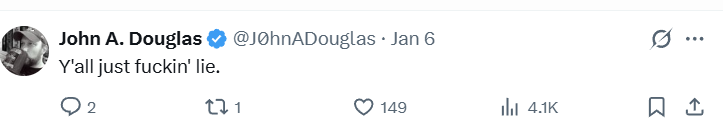 The Black Crown novelist John A. Douglas bluntly replied, “Y'all just [expletive] lie.”